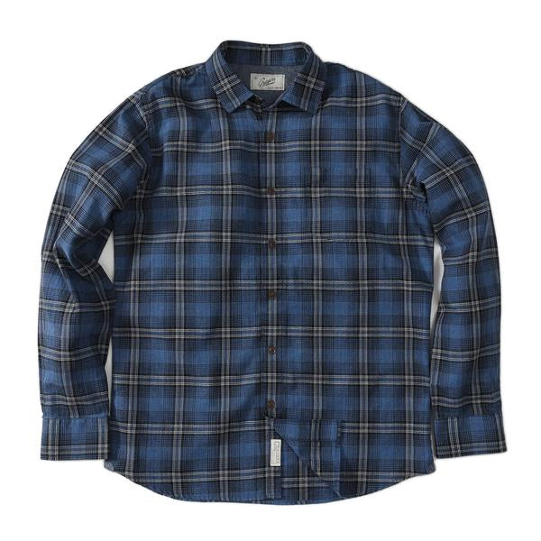 The great transitional shirt. The Truman is light enough for the end of summer and early fall, yet versatile enough to take you through winter. Rich heather yarns are woven into a loose herringbone weave that comes in a blue plaid with a touch of charcoal.