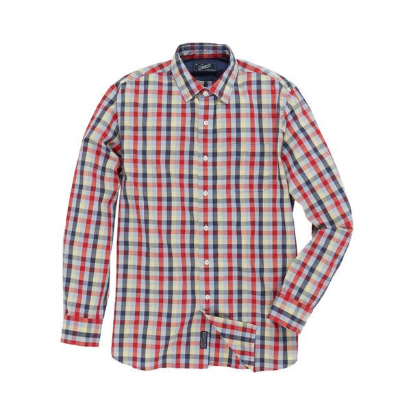 A poplin shirt with a modern twist. We added slub yarns into the weaving process bringing a subtle texture to this vintage-inspired shirt done up in classic colors of red, navy and yellow. A great summer casual look when paired with white, navy or red shorts or pants. It's smart enough to be worn under a navy blazer when a more refined occasion calls. 100% Cotton. IMPORTED.