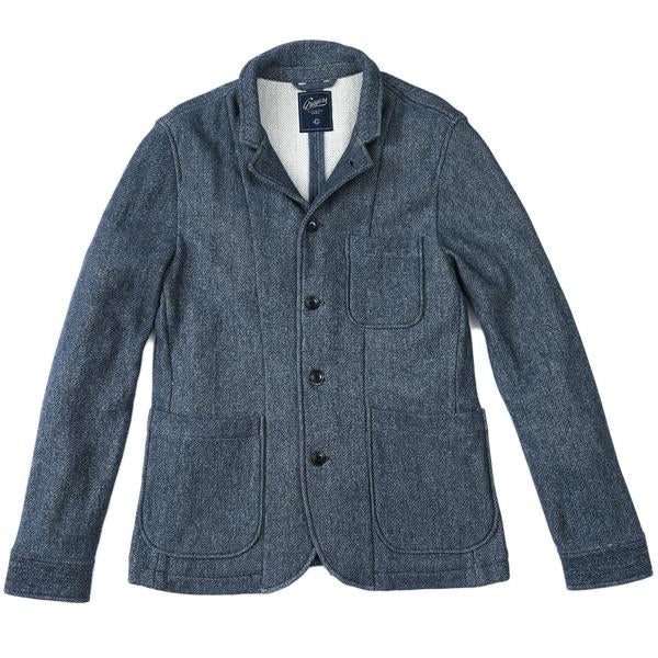 Our french terry sportcoat is engineered with internal piped seams and detailed with 3 patch pockets, chambray detailing, functional button cuffs, anchor buttons and 2 internal pockets. IMPORTED.
