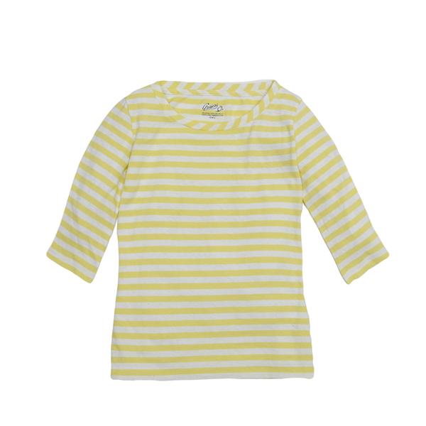 She’ll earn her stripes in this super soft turquoise and white stripe boat neck tee with three quarter sleeves. Size down as it runs bigger. 100% Cotton. IMPORTED.