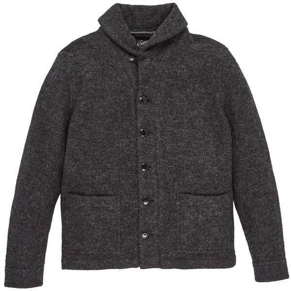 We have the Seventh Earl of Cardigan to thank for the creation of not only the cardigan, but also its evolution into a jacket style knit, which we like to call a "knacket." Our hybrid interpretation of a lapel blazer, featuring a rounded turned-down collar and shaped into a "blazer", is crafted with boiled wool, a technique that results in a densely finished knitted fabric. Unlike a sweater, it is then cut and sewn into a jacket. 50% Wool 50% Polyester. IMPORTED.