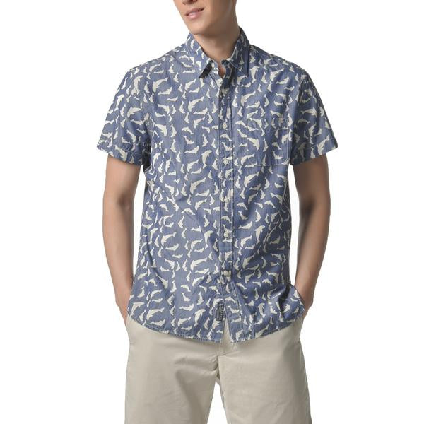 Our vintage inspired dolphin print shirt is the be all of summer shirts. In a crisp yet lightweight chambray, it easily goes from city streets to beach side with shorts and chinos. 100% Cotton. IMPORTED.