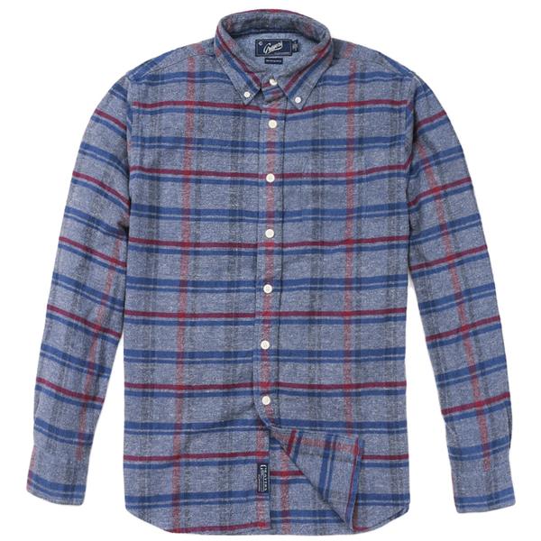 The Boreham Rhidi flannel is a stand out shirt and one of our favorites for the season. It comes in a red and blue plaid that’s spaced out against a charcoal flannel base with the subtle gray flecks that give it a slight texture. Wear it with denim and chinos all fall and winter. 100% Cotton. IMPORTED.