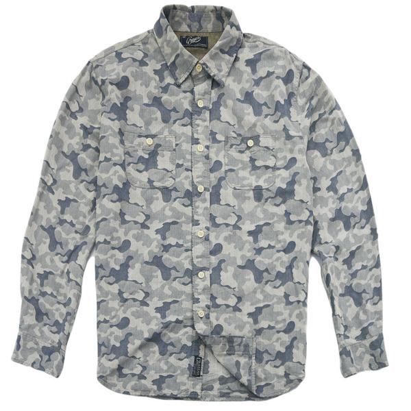 The camo shirt you want to be seen in. Crafted in a rich weave of yarn dyed camo patterns in blue, gray and cream, it's specially detailed with two patch pockets, a chambray trimmed placket, gussets and back yoke. To top it off, we stone washed it for a soft, weathered hand. Wear it as a shirt jacket over a t-shirt with jeans, or buttoned up with khakis or olive chinos. 100% Cotton. IMPORTED.