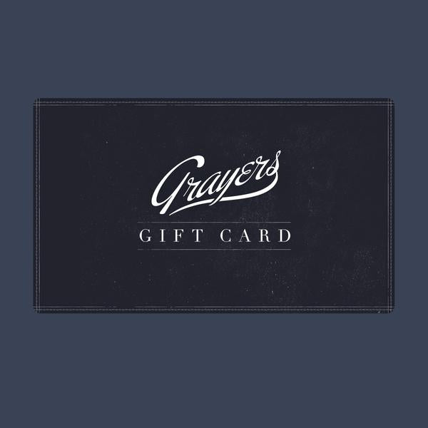 If you would like a custom gift card or a physical gift card, please email customer service@grayers.com or call us at 1-844-grayers. Promotions or discounts may not be used for the purchase of gift cards.