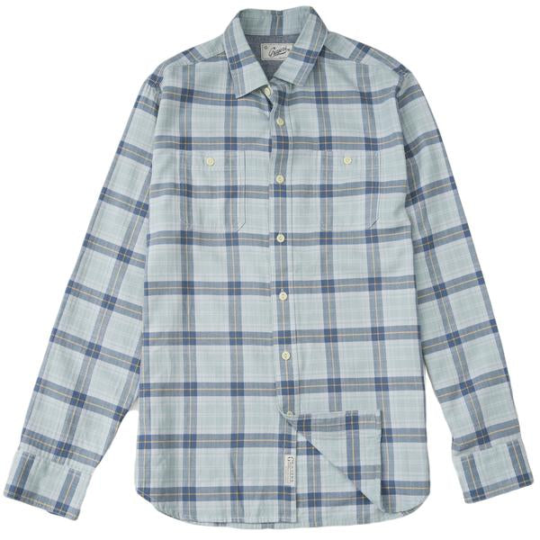 An old school inspired preppy long sleeve shirt in shades of sea foams and blues. Woven with a fine herringbone weave for a subtle texture. If you're aiming for a more refined look, it can be worn under a navy blazer summer casual with shorts.