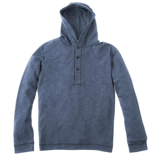 From our new category - Grayers Athletic. This is not your ordinary college hoodie. An update to the classic athletic fleece, our navy heather hoodie sweatshirt is made with a specially knitted light weight French terry in a diagonal twill contruction for a refined feel. Featuring a three button placket. 82% Cotton/ 18% Polyester . IMPORTED