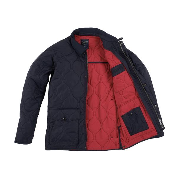 Climate is what we expect. Weather is what we get. For those spring days that feel like a Scottish summer, the navy Reston is a modern lightweight quilted jacket, perfect for those unpredictable days. It's finished with a red contrast lining and trimmed with a cotton twill collar and patch pockets. 100% Nylon. IMPORTED.