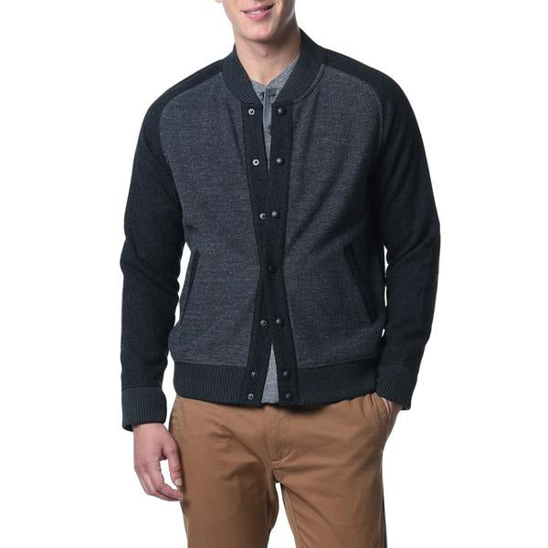 The Ryne is an ideal fall jacket for many reasons including its style and weight. Our modern take on the classic baseball jacket, this knacket, or knit jacket, makes a statement in a fine charcoal herringbone cotton French Terry with lightweight black wool sleeves. It goes well with a henley and chinos or can be worn more refined with dress pants and a button-down shirt. Body: 100% Cotton; Sleeves 65% Wool/35% Viscose. IMPORTED.