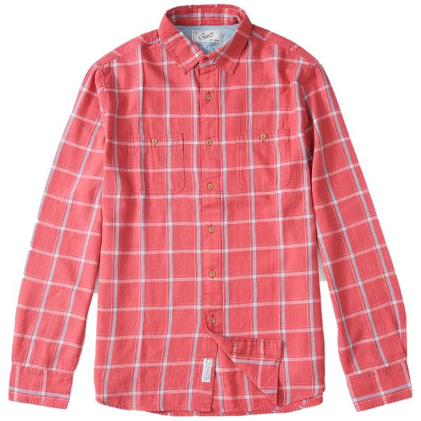 Crafted with fine combed cotton slub yarns into a red and blue windowpane, our slub twill shirts are treated to a special sand wash for an ultra soft feel. Complete with a spread collar and two button through patch pockets. 100% Cotton. IMPORTED.